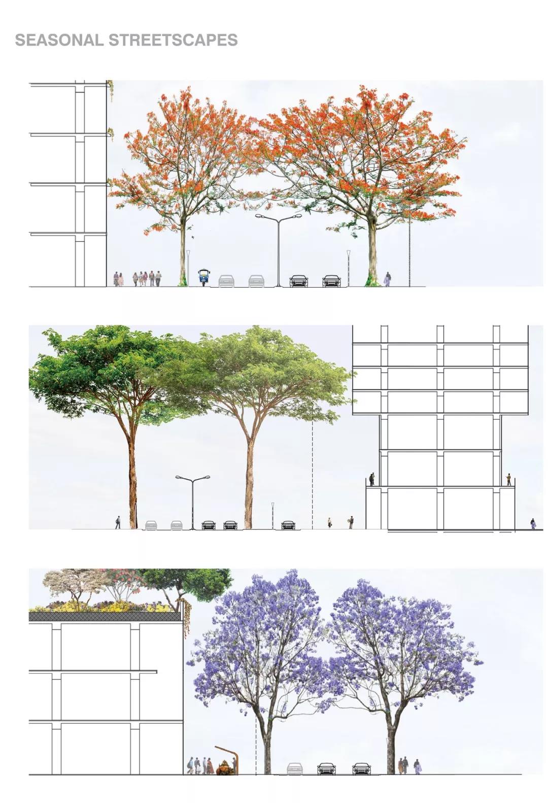 設計對公共領域給予了重點關注,包括改進湖濱長廊、保證充足的街景和大道植被、在整個建筑中構建半公共植物空中花園,以及促進所有城市元素(座位、照明、自行車道鋪設、護柱等)的綜合設計。