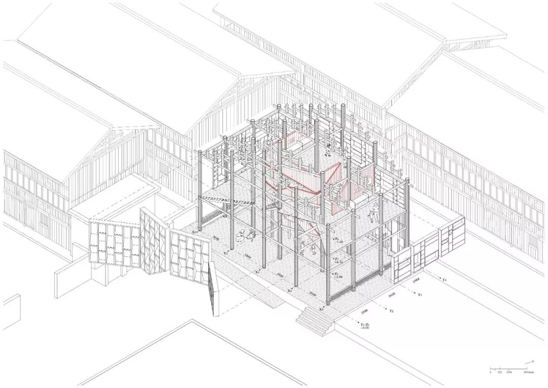 書屋的設(shè)計(jì)由中國(guó)西南少數(shù)民族從遠(yuǎn)古保存至今的“干欄式”建筑為起點(diǎn),應(yīng)不同空間、功能和形態(tài)的需要重新組織結(jié)構(gòu)。書屋的設(shè)計(jì),乍看是傳統(tǒng)的侗族建筑,但當(dāng)人們參與到空間中去就會(huì)發(fā)現(xiàn)它是新與舊的融合。這種設(shè)計(jì)方法為傳統(tǒng)的材料和工藝注入了新的生命。