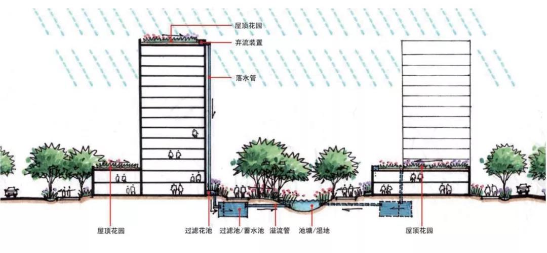 在可持續(xù)發(fā)展方面,HPP所推崇的循環(huán)經(jīng)濟概念也被植入到設(shè)計的細節(jié)之中。通過建筑屋面的防水層上鋪以種植土,并種植植物,使其起到防水、保溫、隔熱和生態(tài)環(huán)保作用。將自然途徑與人工措施相結(jié)合,在確保城市排水防澇安全的前提下,最大限度地實現(xiàn)雨水在城市區(qū)域的積存、滲透和凈化,促進雨水資源的利用和生態(tài)環(huán)境保護。
