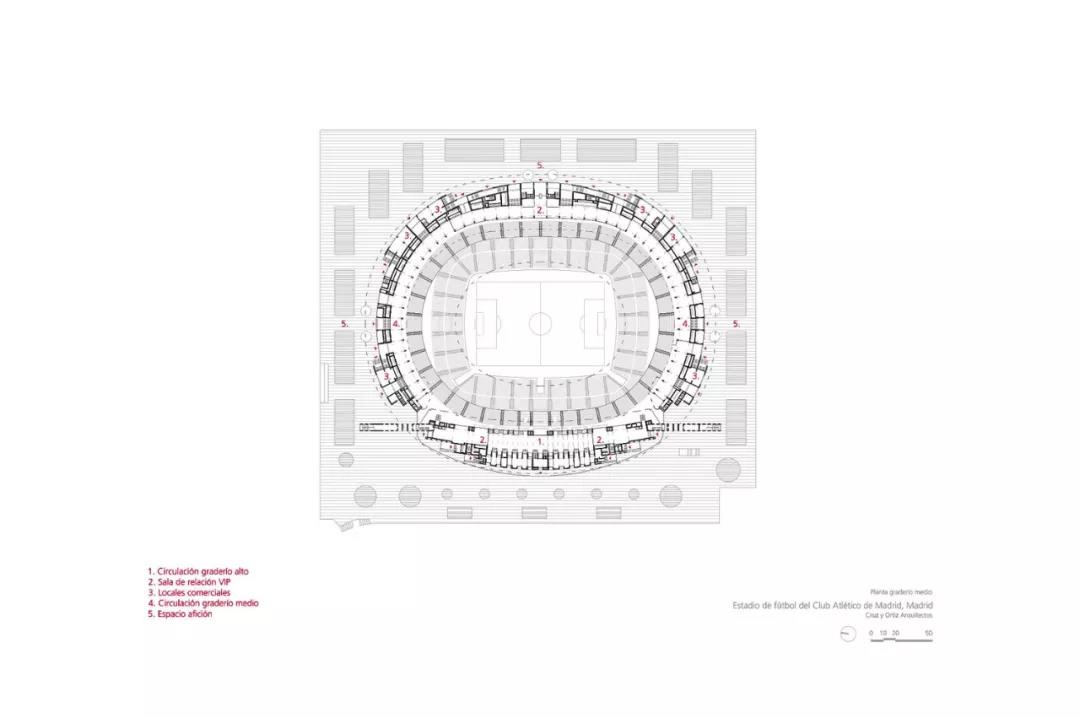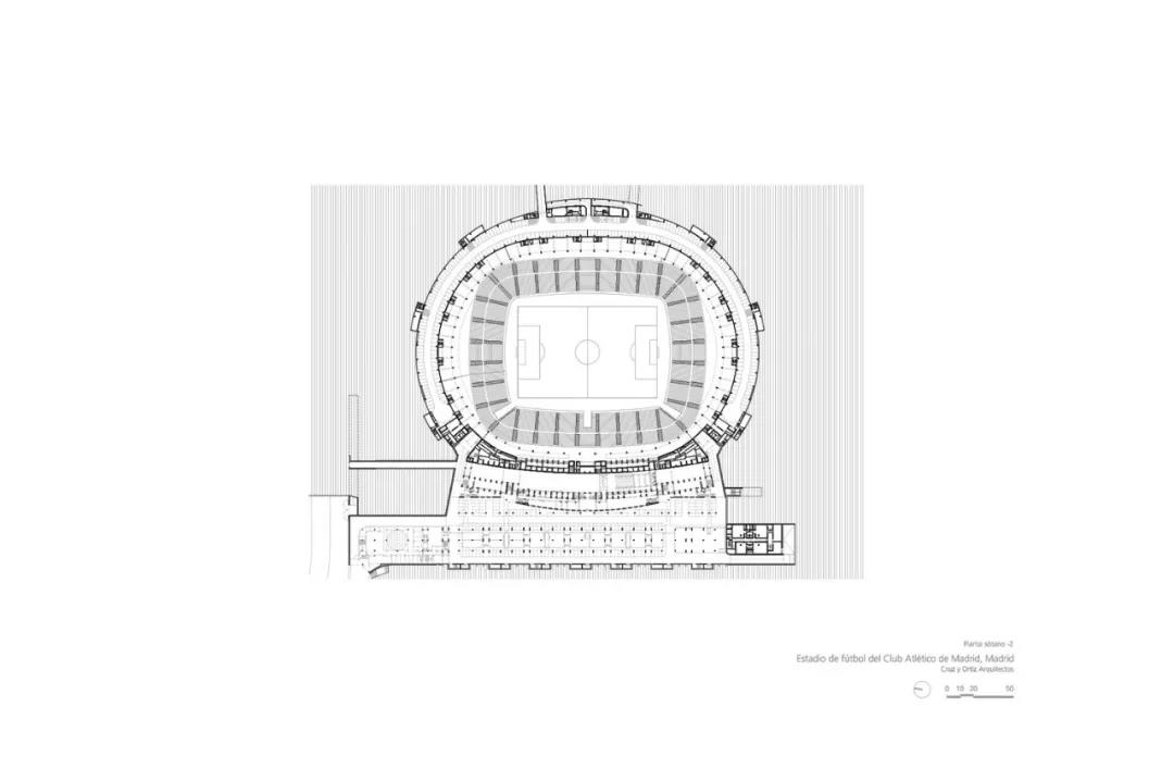 項(xiàng)目的最初目標(biāo),原本是避免新球場(chǎng)淪為新舊兩部分的合集。但與之相反,新舊兩部分的完美契合,恰是表達(dá)了馬競(jìng)俱樂(lè)部的新形象。