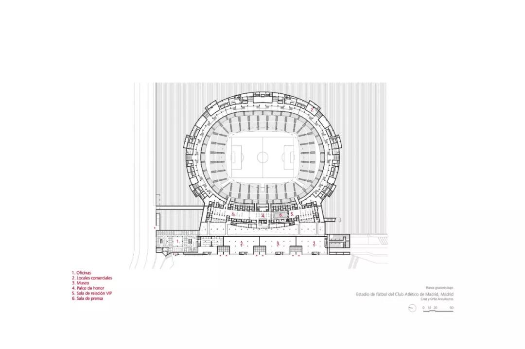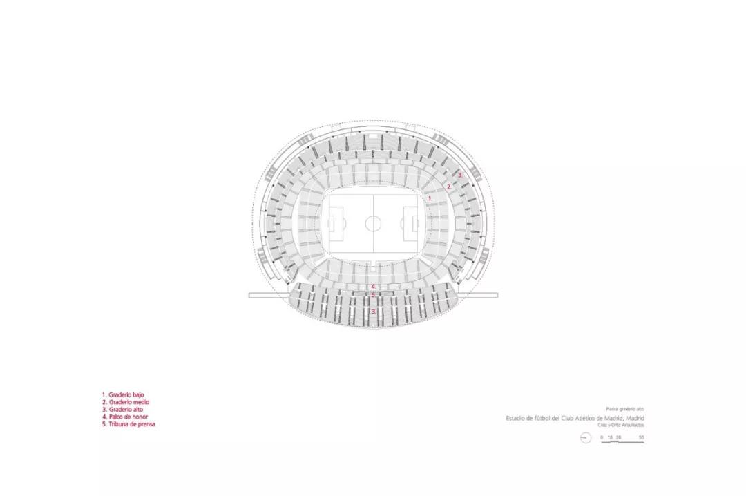 球場(chǎng)的擴(kuò)建實(shí)現(xiàn)了雙重目標(biāo)。一方面,舊球場(chǎng)所擁有的可識(shí)別元素并沒(méi)有被丟掉,另一方面,擴(kuò)建部分很好的將舊球場(chǎng)結(jié)合在其中,形成了一個(gè)和諧的整體。