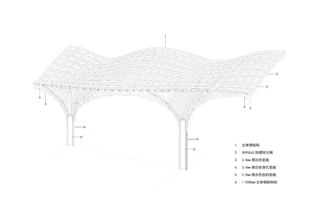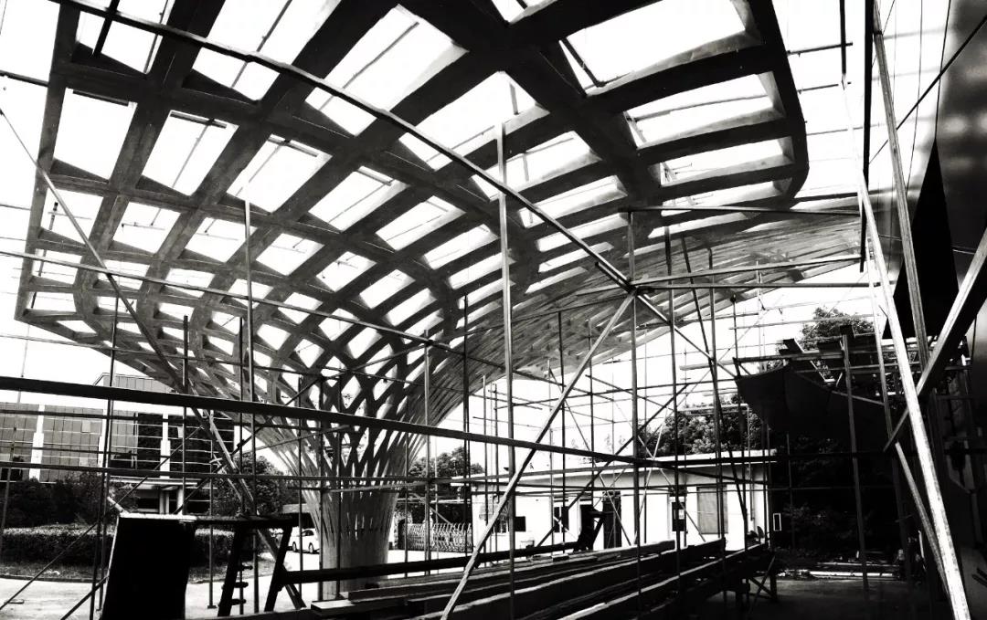 在后期深化設計與建造過程中,我們創新性地深化異形龍骨幕墻、TPO屋面、雙曲鋁板開花柱節點,并采取異地1:1放樣的方式調整、確保實際建造效果。