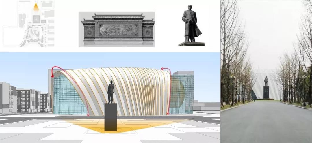 圖書館通過玻璃幕墻、穿孔金屬板相結合,形成各立面的特色:北立面面向主軸線和周恩來雕像,運用中國古典建筑“影壁”的概念形成進入圖書館的“過渡空間”,同時成為周恩來塑像的背景,起到更好的烘托作用。