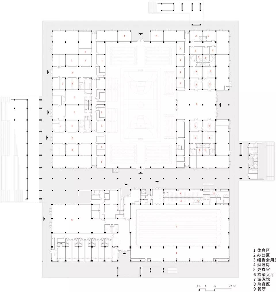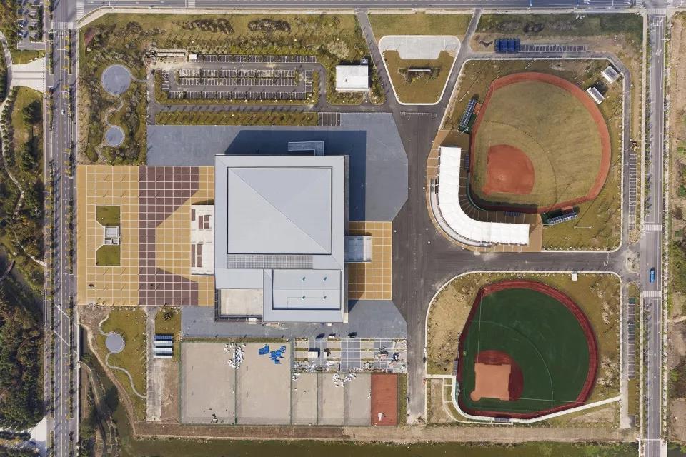 將多種功能復合為一個主體建筑整體,以混合開放的空間構想、方正簡約而極富力度的形體設計,輔以自然流暢的景觀配置,融運動性復合性與藝術性于一體,打破傳統體育建筑形象印記,使之成為場地中的核心、區域中的標志。