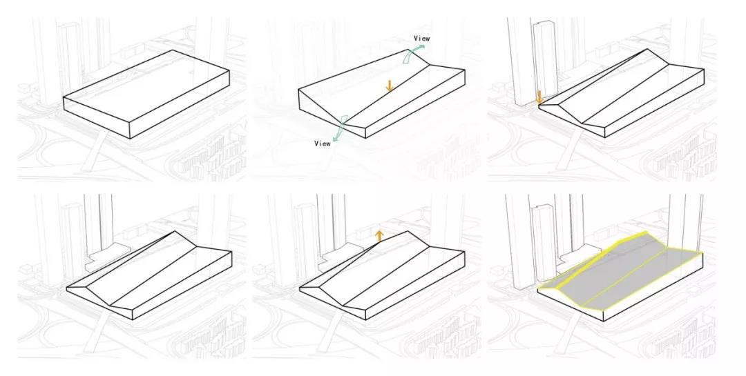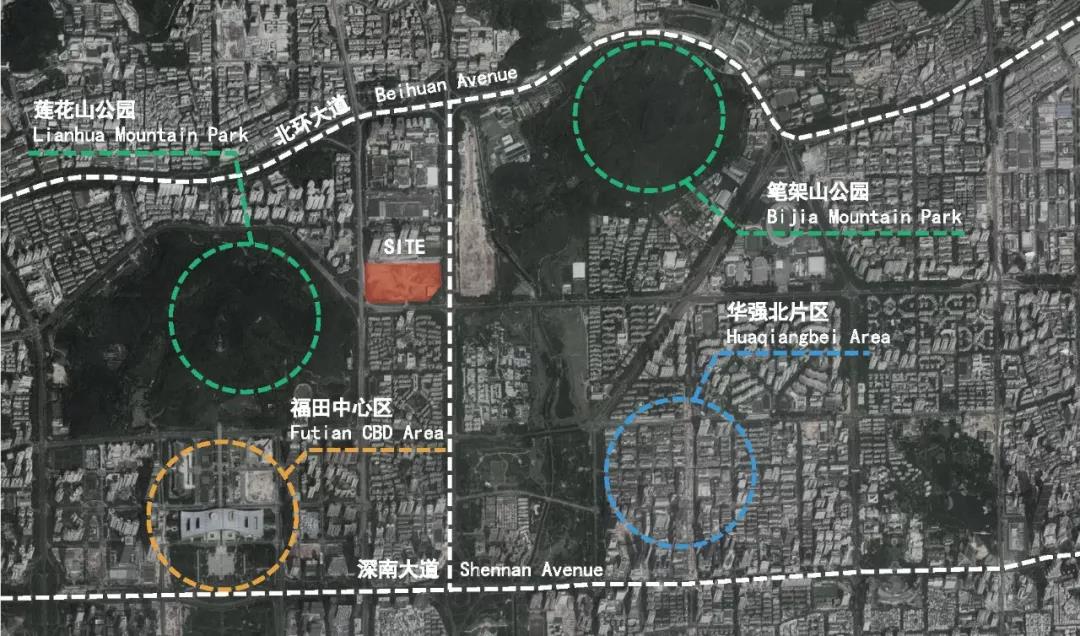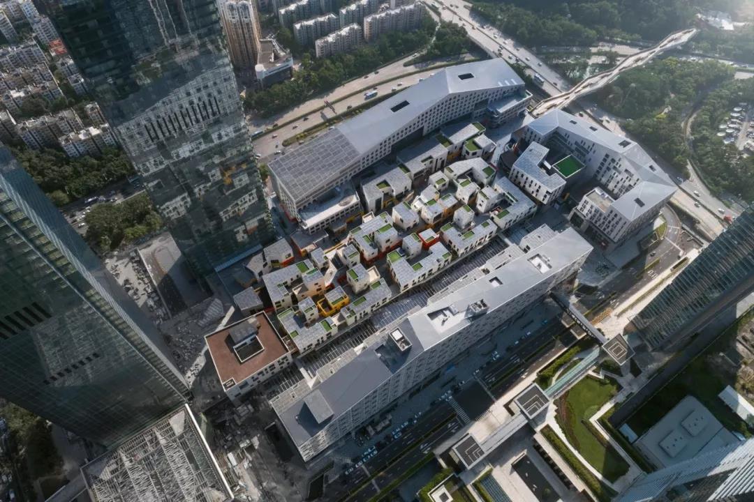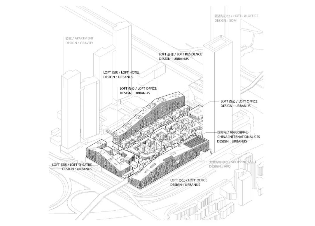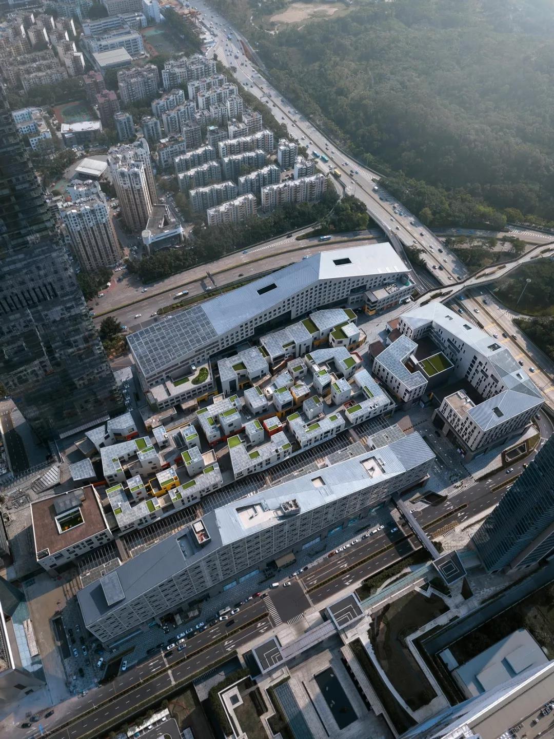 基地為包含6棟超高層辦公、酒店及商務公寓的高端綜合體,毗鄰深圳CBD核心圈,位于兩大城市中心公園之間。都市實踐的設計任務是在其占地逾6萬平方米的大型購物中心頂部,建造10萬平方米的居住及辦公 LOFT。