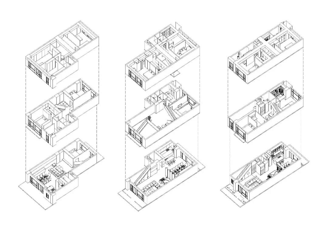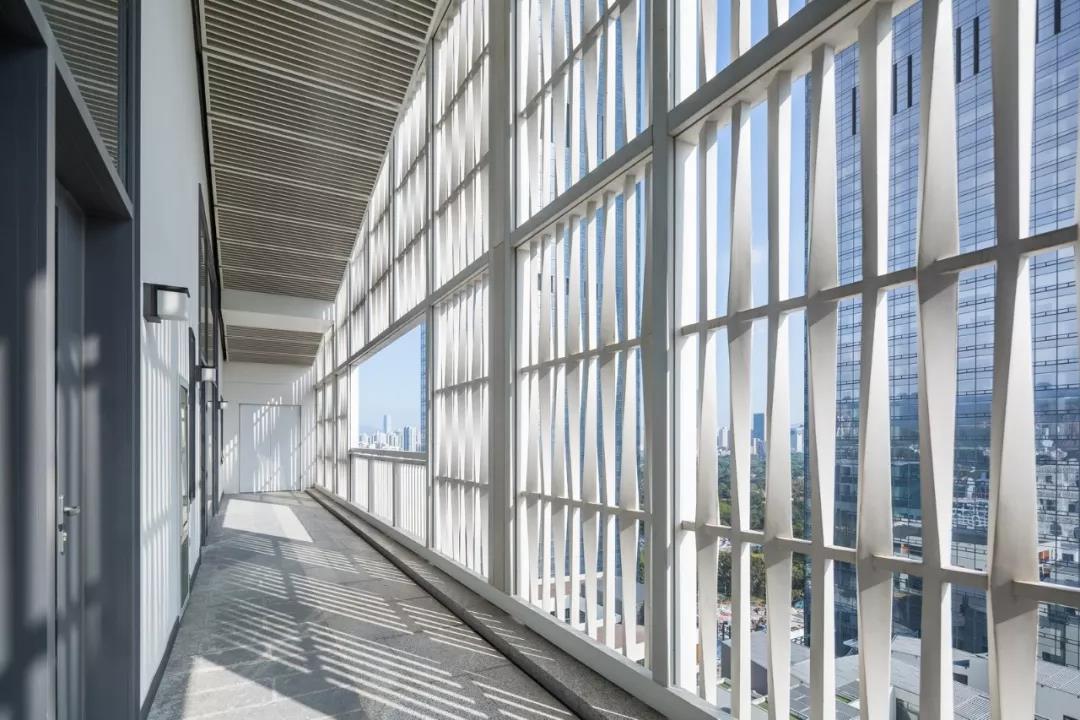 A區居住LOFT主體標準層高9米,可靈活劃分使用;于南北兩側設置外廊,通風防曬良好;戶戶擁有私家庭院,鄰里之間既有交流,又保證了私密空間。立面以灰白色“擰麻花”的格柵樣式力求將材料本身的性能發揮到極致。
