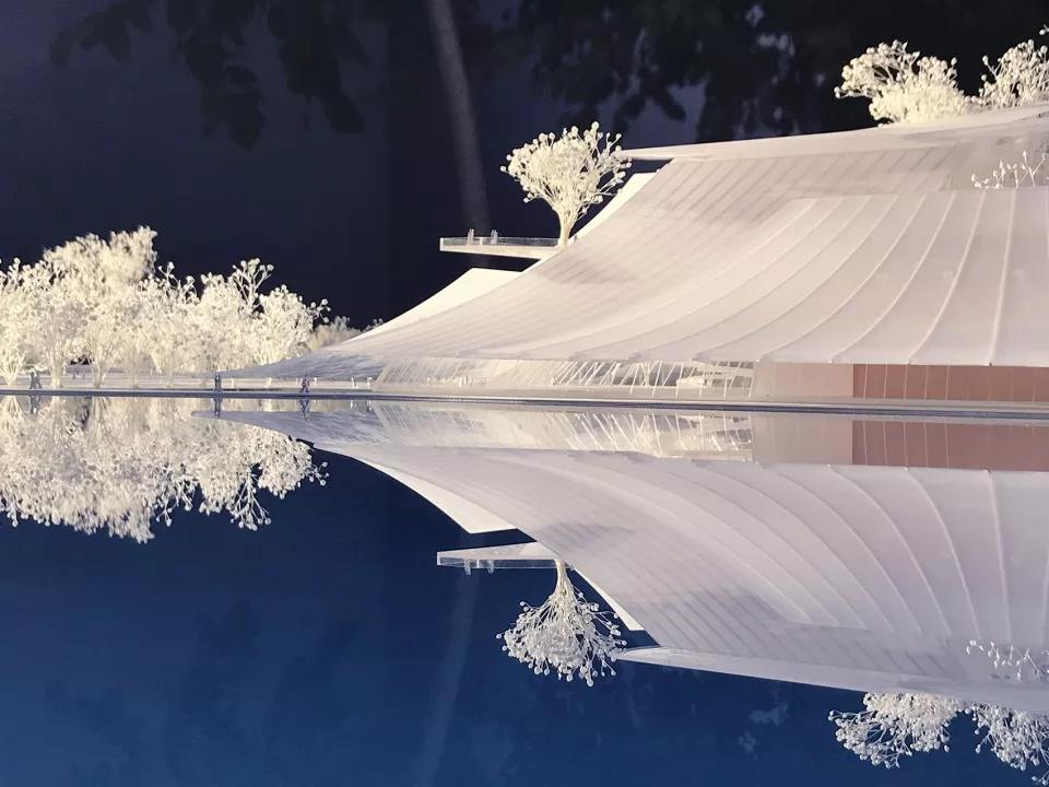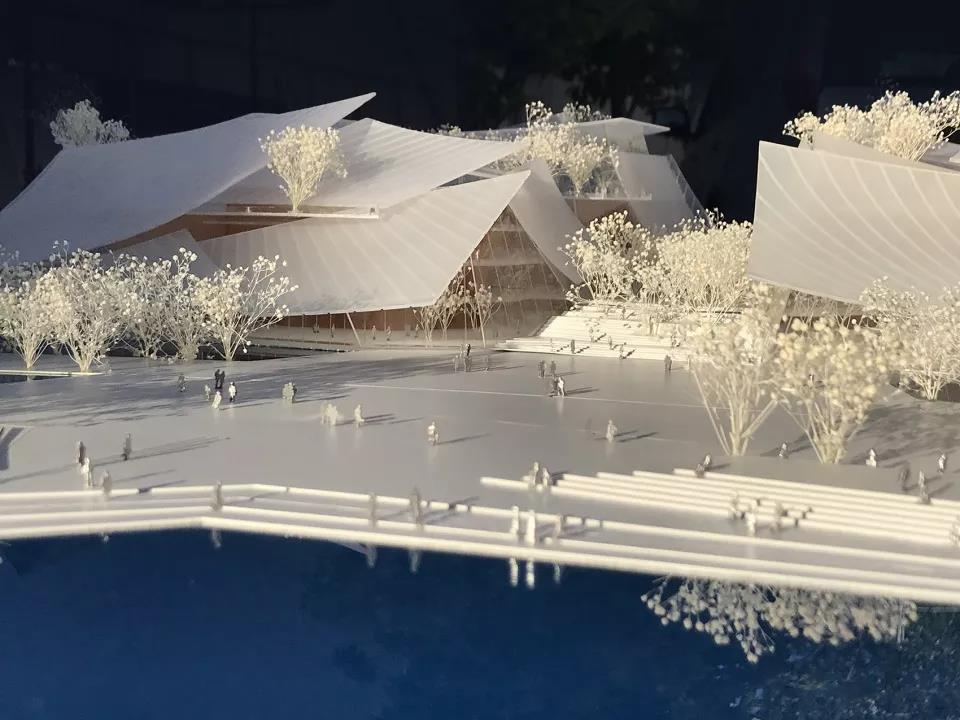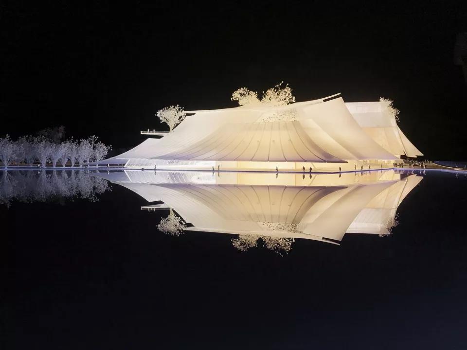▼義烏大劇院實體模型局部,劇院在水面上投下倒影