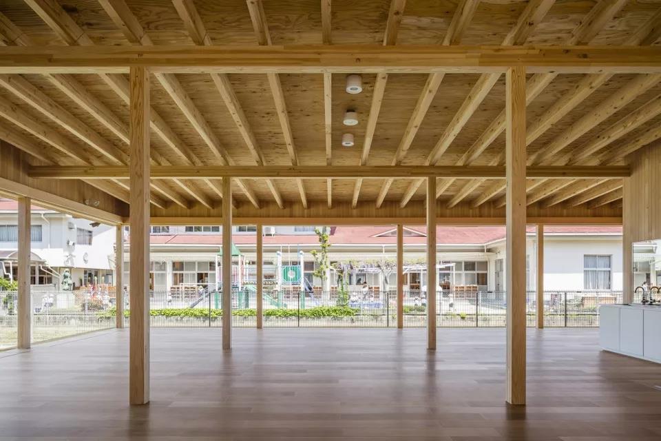 這座幼兒園位于日本兵庫縣(Hyogo Prefecture)的龍野市(Tatsuno City)。在本項目中,建筑師創造了一個具有社區意義的多功能大廳,不僅可以服務于兒童,還可以供當地社區內的居民們使用。