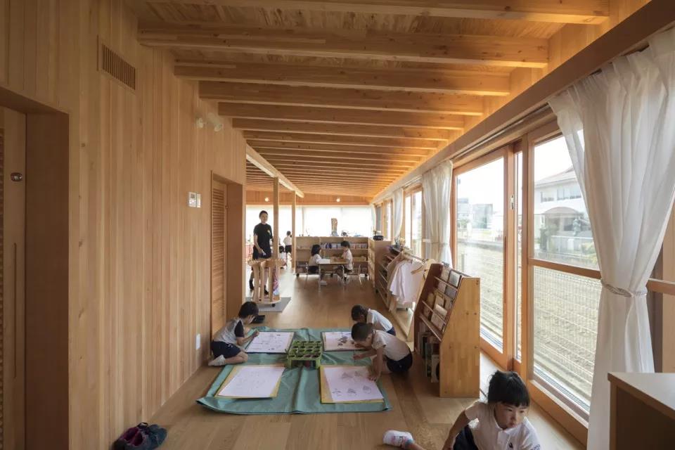 這座幼兒園的空間設計完全能夠滿足孩子們的求知欲,如具有開放感的寬敞走廊和半室外空間、高低不一的室內外空間,以及一個擺放著游樂設備的露臺等,都為孩子們提供了自由快樂地成長和學習環境,值得一提的是,人們還可以根據自己的需求,來改變其上文提到的擺放著游樂設備的露臺的空間布局。