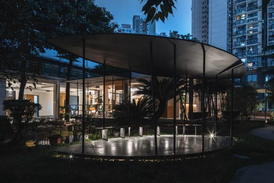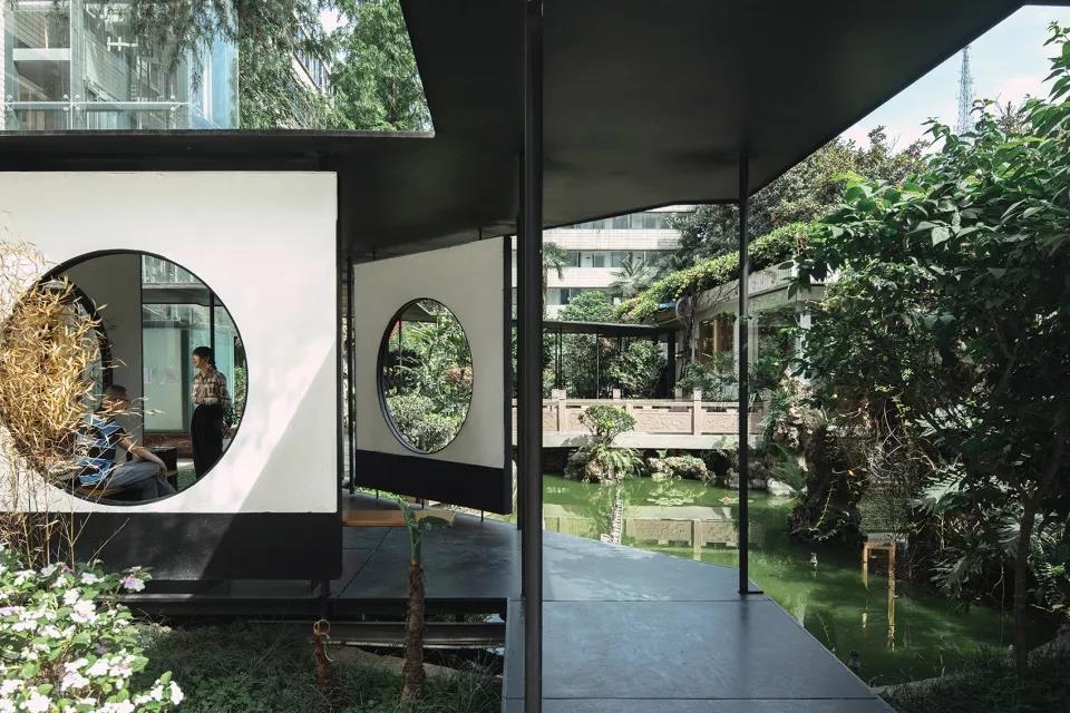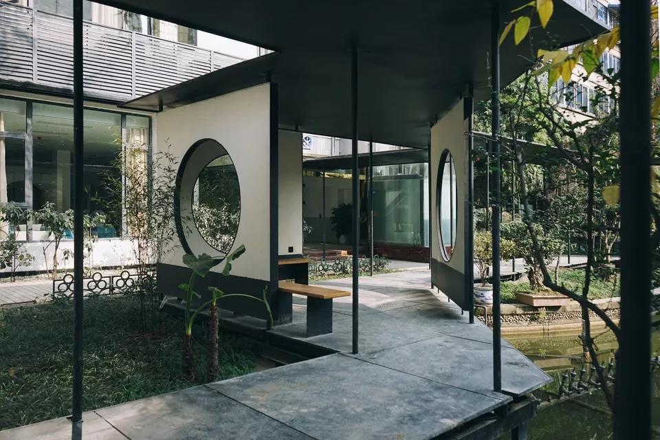 花園島庭院是聯(lián)合辦公的公共服務(wù)區(qū),是以“當(dāng)代園林”的形式存在的,設(shè)計(jì)一個(gè)“園林”并非我們的初衷。我們的初衷是構(gòu)建日常生活與詩意情景的重疊,這恰恰與中國古典園林的精神一致,得到一個(gè)相似的空間氛圍也就順理成章了。