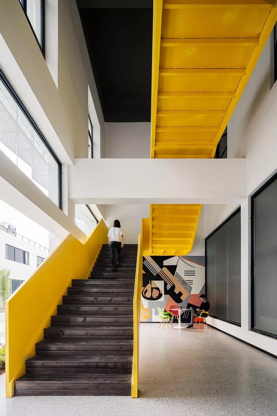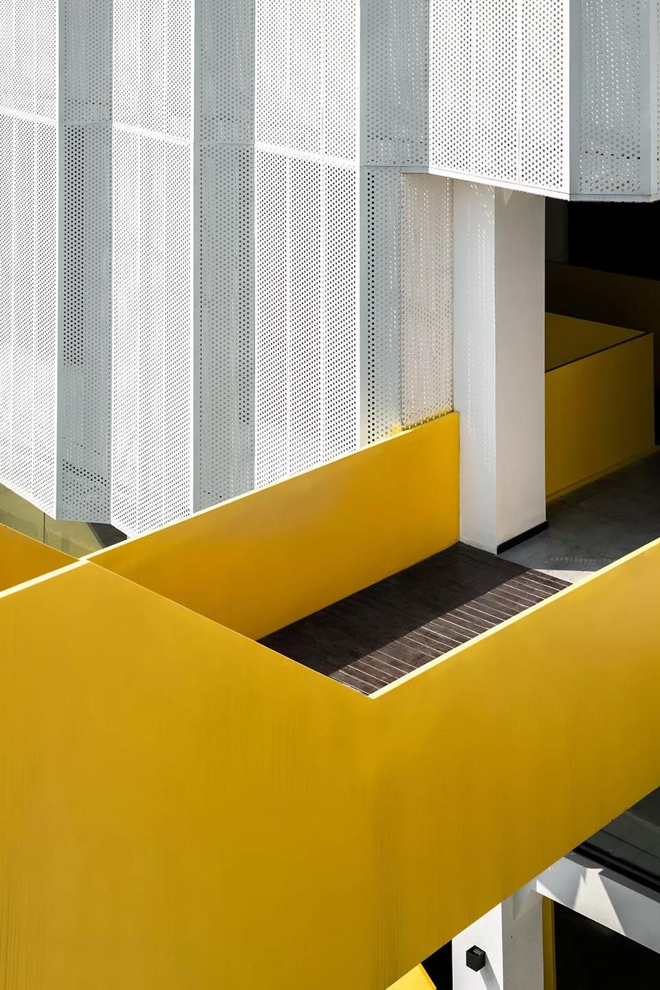 值得一提的是,設(shè)計(jì)有策略地對建筑局部進(jìn)行優(yōu)化,比如設(shè)計(jì)對建筑之間的樓梯進(jìn)行藝術(shù)化的處理 – 大膽鮮亮的明******不僅讓社區(qū)更年輕化,也讓來到此處的人感受到不一樣的美,印象深刻。
