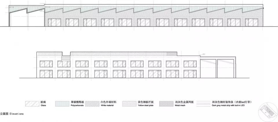 ▼在建筑沿街面,設(shè)計(jì)將原有藍(lán)色彩鋼板鋸齒的工廠形態(tài)加以優(yōu)化,形成回應(yīng)燈芯絨記憶的立面肌理并將單層空間變成loft空間
