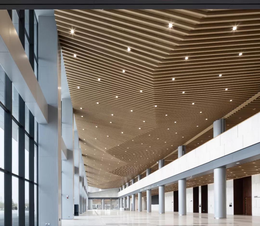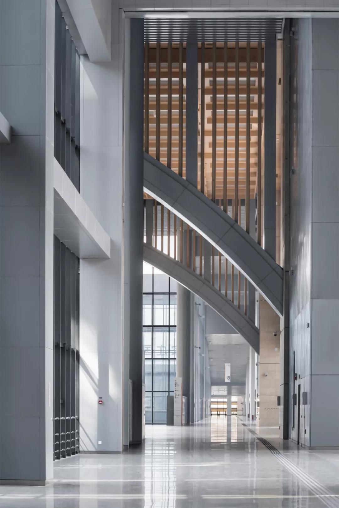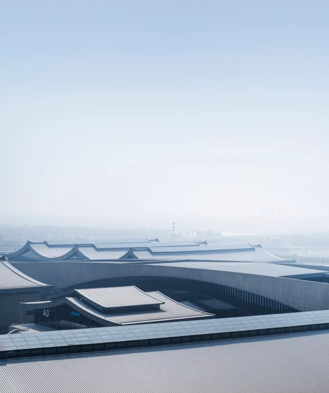 4、由懸索結構自然形成的大屋面形成對傳統建筑的強烈映射,同時在展廳山墻面細部抽取借鑒正定縣隆興寺摩尼殿歇山抱廈意象,用新材料新技術呈現幾何力學和建筑美學的統一,也進一步提升了參觀者對建筑在地性的認同度。