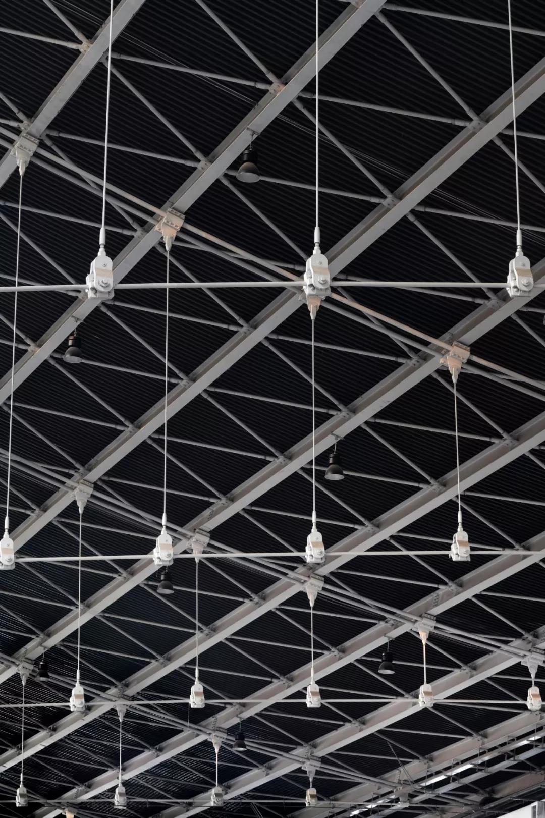 3、結合會展建筑大跨度空間的需要,應用懸索結構實現功能要求同時實現富有韻律感的連續屋面。石家莊國際會展中心的7個標準展廳全部采用全球罕見雙向懸索結構,較桁架結構約節約一半用鋼量。懸索結構展廳屋面連綿起伏錯落有致,展廳大跨度屋蓋,主承重結構最大跨度105米,次承重結構最大跨度108米。