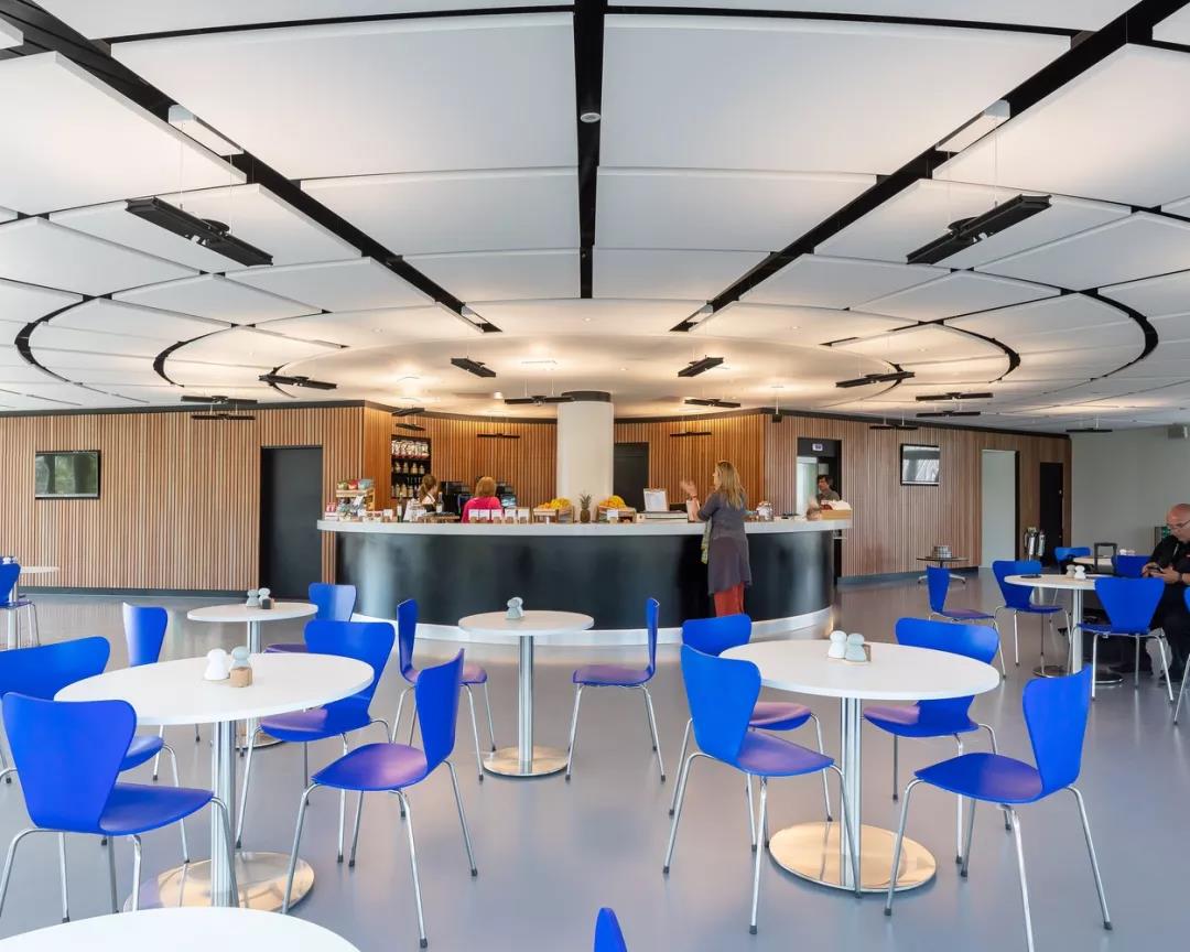 該社區可容納50名戴森工程技術學院的學生和訪問戴森的工作人員。高品質的生活艙是由一家工廠的交叉層壓木材(CLT)制造的,實現了快速現場組裝。這些艙體以單元的形式被布置,兩到三層樓高,它們創造了一個受歡迎的社交空間,為這個位于工業建筑旁邊的校園增添了一道引人注目的風景。