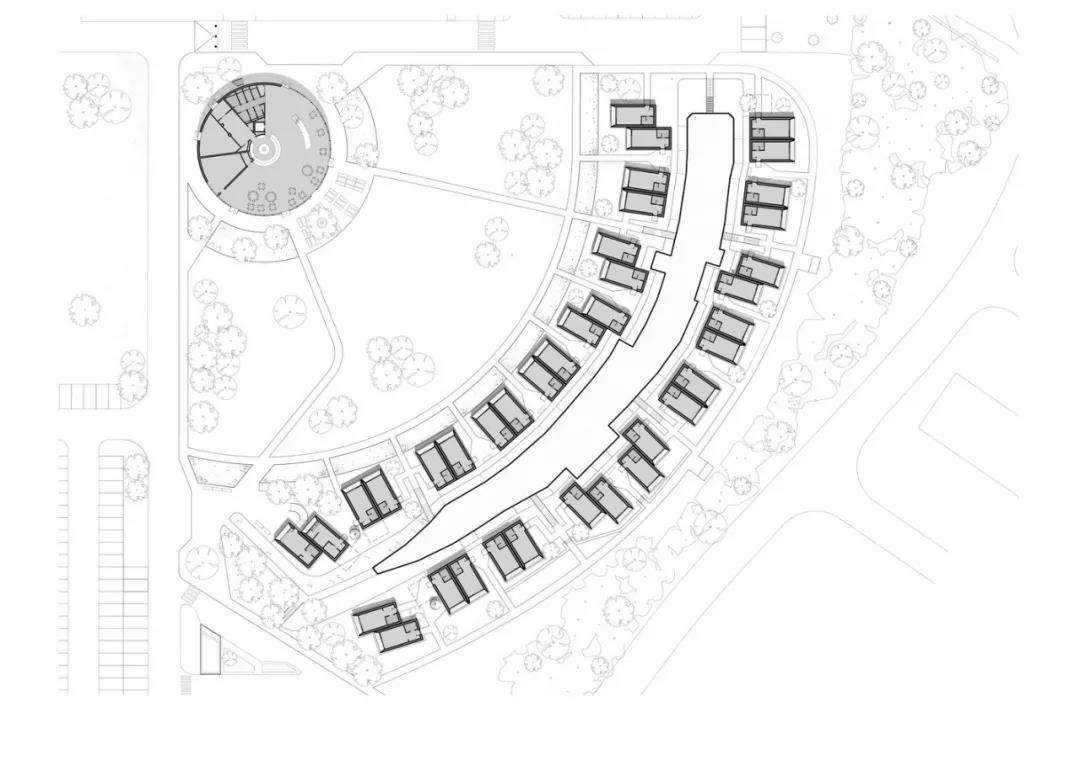 動感的艙體組織為社區增添了一種非正式居住特征。綠色空間和道路規劃了居住者在社區中的移動路線,連接了居住區和位于中心的社區俱樂部(稱為Roundhouse)。