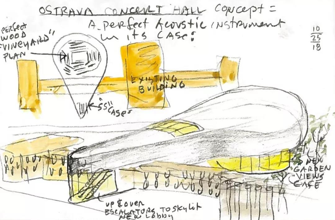 斯蒂文?霍爾建筑師事務所和Architecture Acts贏得了捷克共和國奧斯特拉瓦音樂廳設計的國際競賽。該方案獲得了七人評審團中的六人支持,擁有1300個座位,緊鄰現有的文化之家,被設計為“一個完美的聲學樂器”。