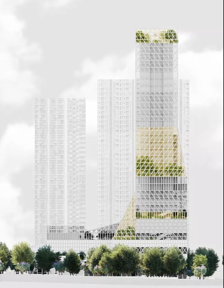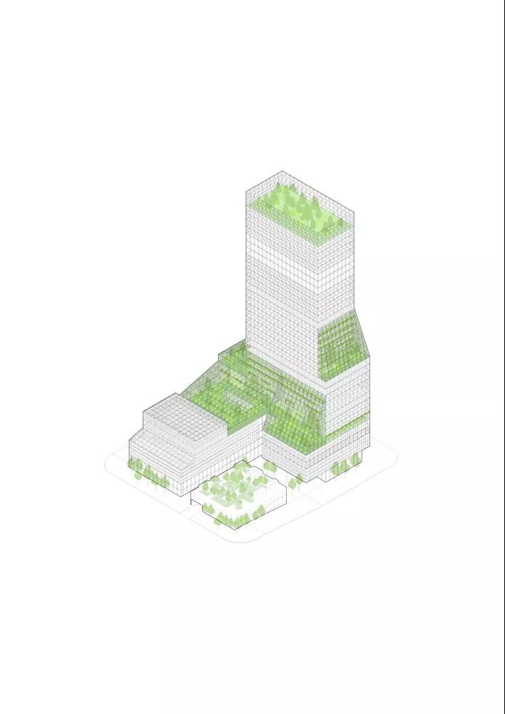 城市綠地和空中花園提供遮陽,減少城市熱島效應,并為公共空間降溫。這些中庭還提供室內和室外、公共和私人之間的過渡空間。中庭網絡就像人體的血管,將生命注入建筑物,將垂直移動的過程融入體驗城市生活的一部分。