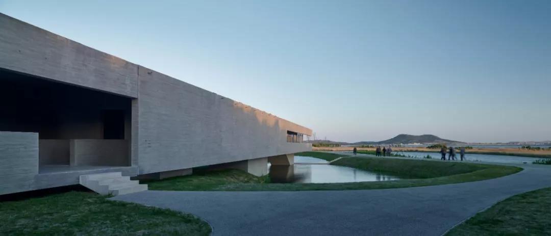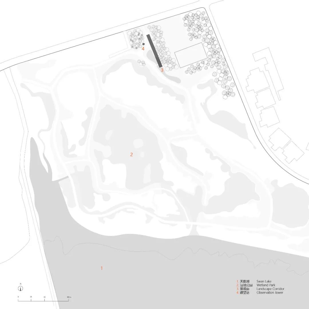 天鵝湖濕地公園位于山東省榮成市,是一處緊鄰黃海的自然濕地,場地平坦開闊,遍生蘆葦,水流蜿蜒曲折穿梭其間。每年十月左右,成群的天鵝會自西伯利亞南下至此過冬,濕地公園的美景與天鵝的到來也吸引著大批游客至此觀光游覽。當地政府因此希望在公園內修建一組建筑,為游客提供觀景、餐飲等服務。