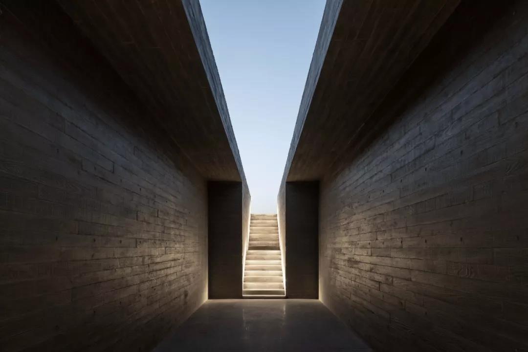 兩側的路徑在行進過程中時而聚合,形成出入口、連橋或內院;時而分化形成樓梯,向上可至屋頂平臺遠眺群山,向下可至水面近看瀲滟,在整個游覽過程中形成一系列豐富的體驗變化。