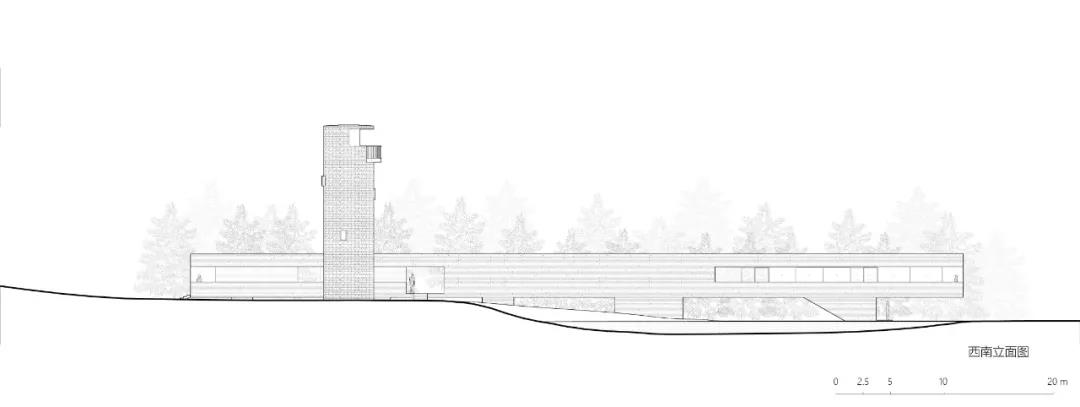 錯縫排列的松木模板為堅硬的混凝土墻體賦予了細膩的木紋肌理,給建筑增添了些許溫暖的性格,同時也回應了場地周邊以松林為主的自然環境特征。