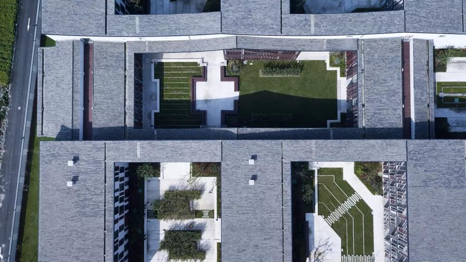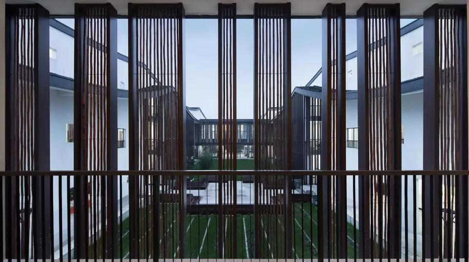 ▼各個組團院落在空間上被連廊這一灰空間分割,但視域的滲透和氣流的流動卻沒有被阻斷,使得院落的空間層次感加深