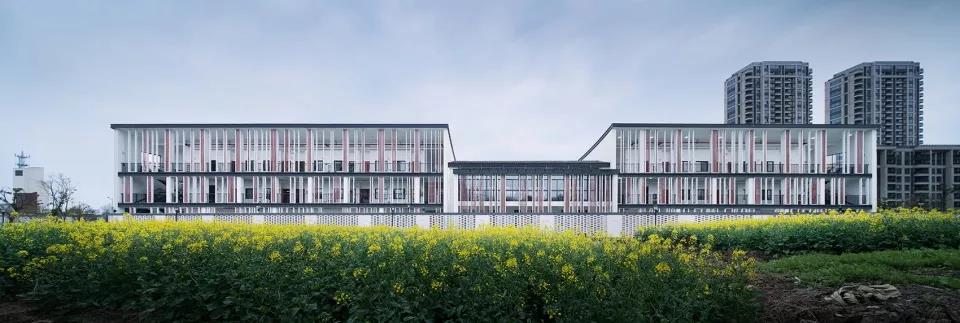 杭州杭行路小學,位于杭州西北部良渚組團,毗鄰環境優美的京杭大運河沿河景觀帶,現狀用地東面為運河支流沿河景觀帶,其余多為農田、空置場地及少量農居點,周邊呈現出自然生態的景觀空間。