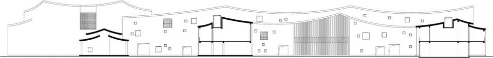 ▼屋面形式呼應傳統山水,采用概括提煉手法,用曲折的屋面模擬連綿起伏的自然山脈,力求體現自然山巒的形態和神韻