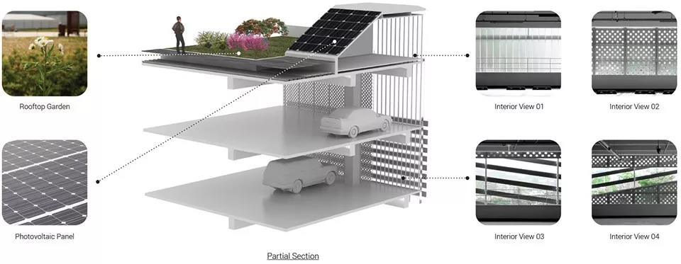 總而言之,本項目成功地向人們展示了一種新型的停車樓結構。它向大眾證明了停車樓不僅僅是車輛的儲存容器,更是一個城市社區空間和新人際關系的發源地。