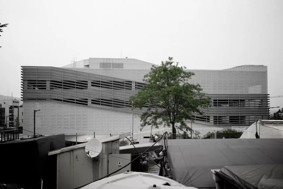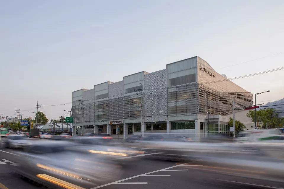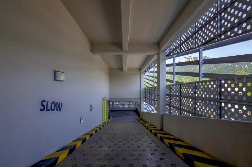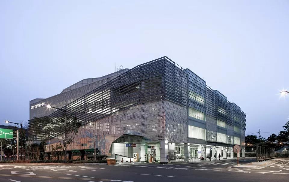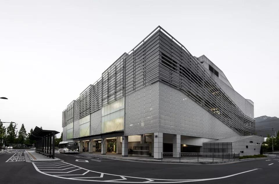 在本項目中,設計團隊通過重新構思建筑圍護結構的性能,從根本上重新構建出一座停車樓。考慮到傳統停車樓中存在的主要問題之一——都是一個單獨的巨大體量,道峰山中心停車樓的設計團隊提出了一個具有創新性的設計概念,即在建筑的外圍護結構中插入一系列彼此分離的金屬帶。