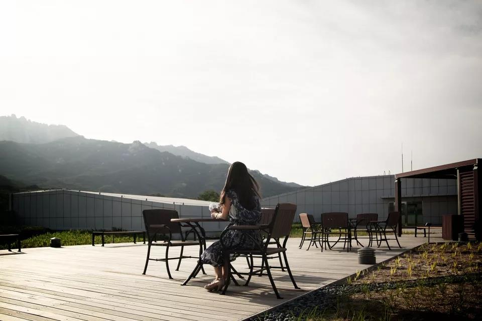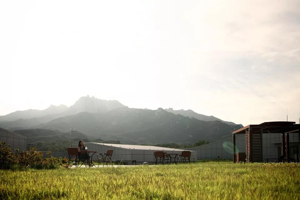 ▼屋頂的公共空間,傾斜的屋頂與道峰山的周邊景觀形成視覺聯系