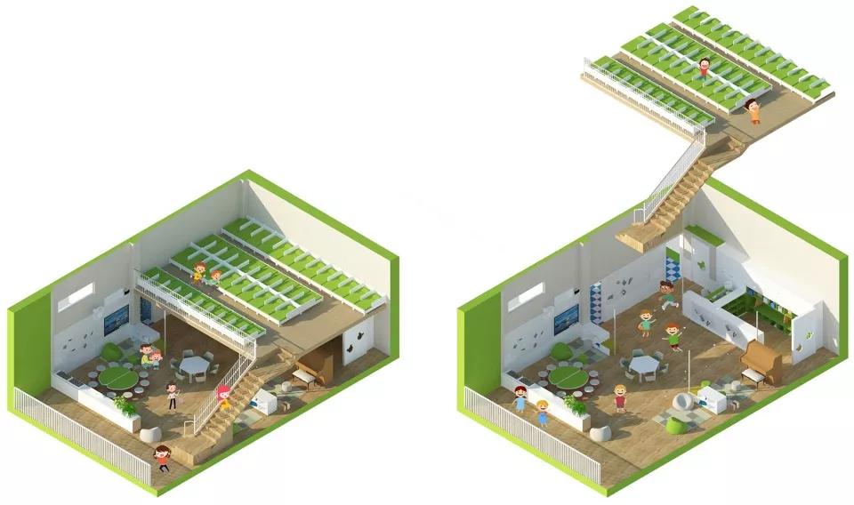 ▼活動區(qū)與午睡區(qū)分離的Loft教學單元
