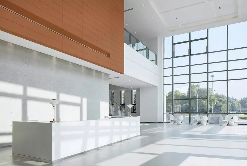 另外一個因素是項目有美國綠色建筑評估體系LEED-NC金級認證標準,對再利用材料和節能環保有較高的要求。同時從整體方案的地域文化性控制來講中性灰色調和水墨江南的氣質也是吻合的。包括使用的拋光混凝土地坪也都沒有使用環氧基,而是采用水泥基。其中當然也有政府對造價控制的嚴格經濟性要求。