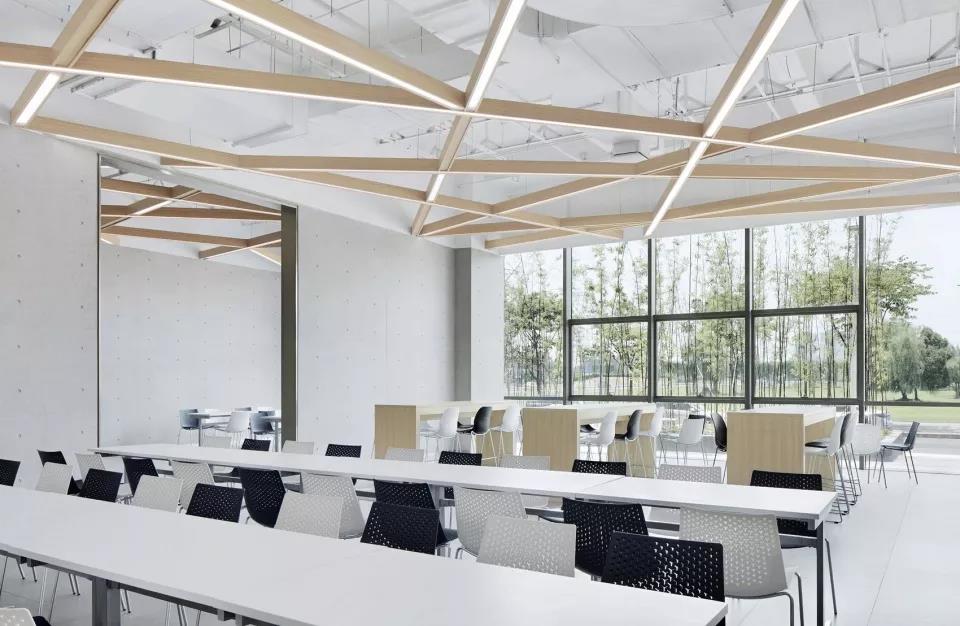 同時可以減少地下空間和室外轉換時的光比過大產生的“暗適應”生理現象。而格柵形式的本身也是具有東方靜謐、秩序氣質的地域文化性表達。包活結合室內景觀的等候區域選用了具有東方庭院氣質的青楓樹,在陽光與室外綠地的交融中消除了建筑內外的差異,營造空間中人與自然的親密和諧氛圍。