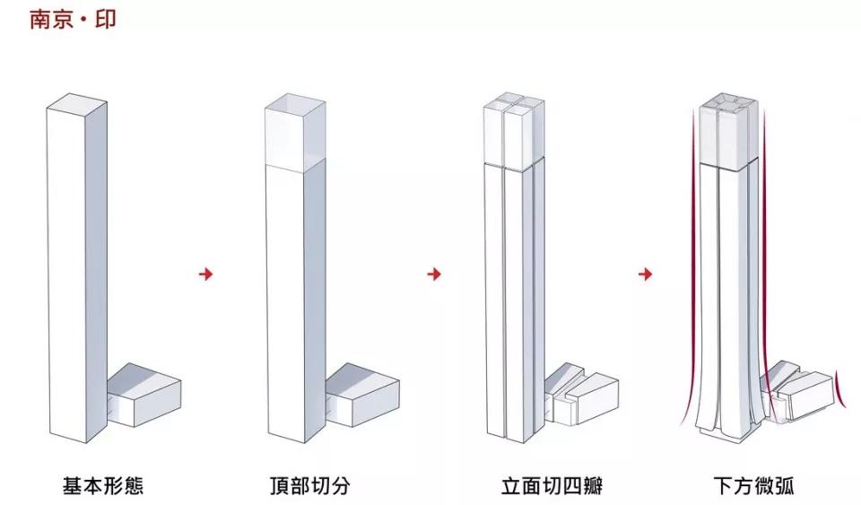 南京新街口核心商圈位于南京古城中心, 被譽為“中華第一商圈”。地塊周邊高樓林立,是南京重要的高層核心集群。Aedas以設計意向為突破,從中國傳統藝術篆刻印章中獲取靈感,“印”字左部是“爪”,右部是“節”,合起來是手持符節,執者為信,充分體現蘇寧“至真至誠”的企業精神。