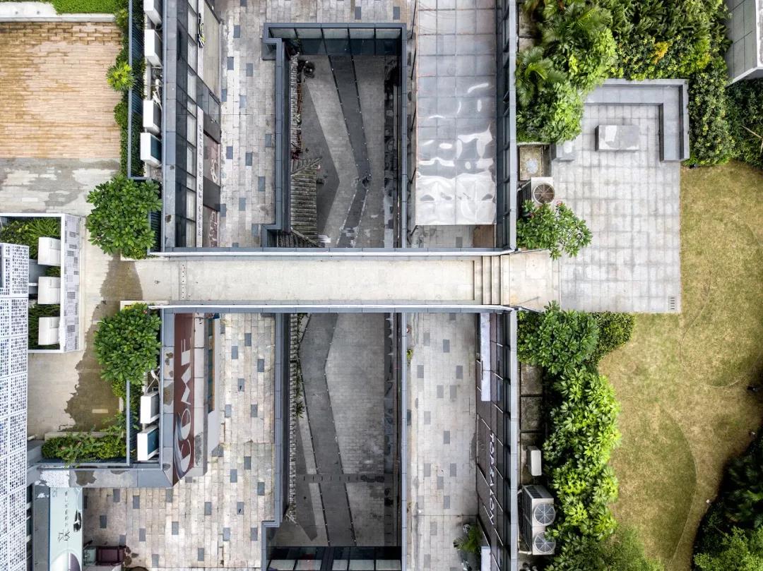 為了保證每個單元擁有最佳景觀視野,我們把一棟矩形平面和一棟L型平面的相對面做到最小,使其與三角形基地契合,同時可以盡量減少彼此的視線遮擋。為了打造“多首層,多臨界面,多元化功能流線”的概念,我們設計了露天退臺式商業內街,使人們在購物的同時享受更多的綠意與陽光。