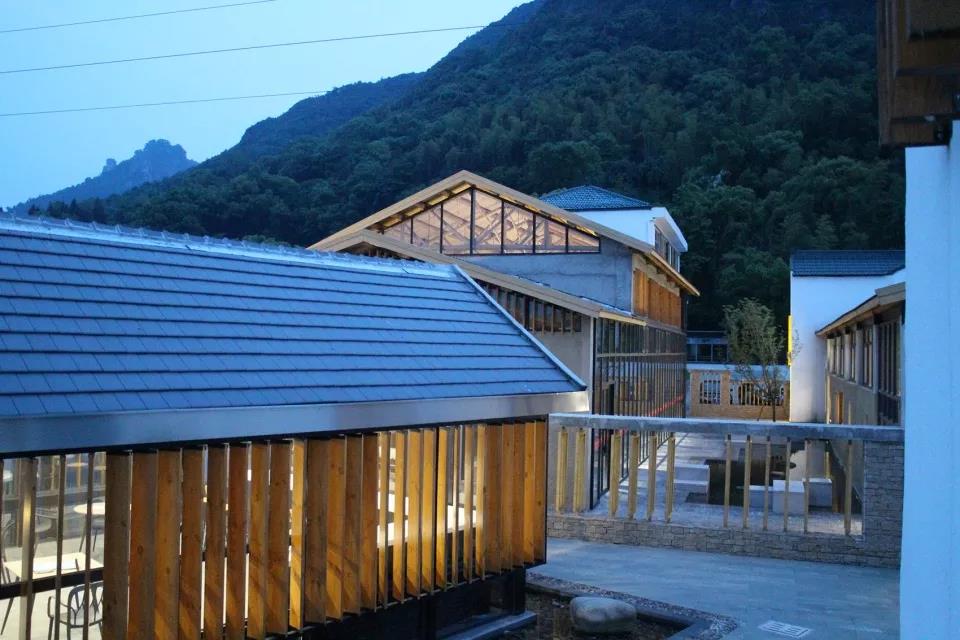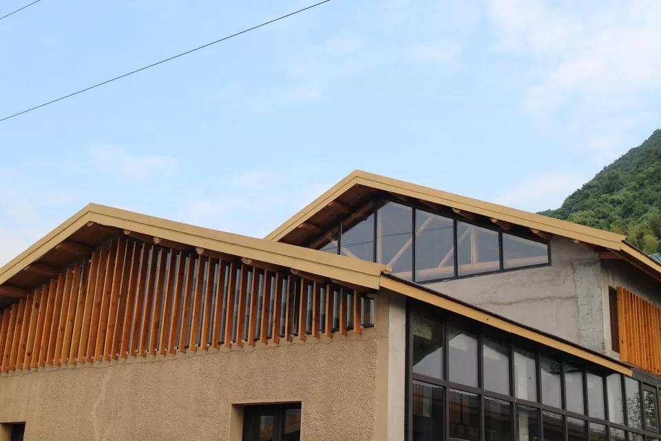 ▼游客接待服務(wù)中心外觀局部,屋架錯(cuò)落有致