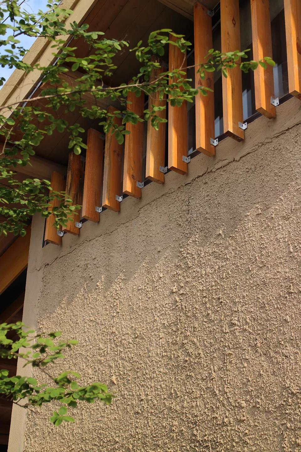 ▼游客接待服務(wù)中心外立面細(xì)節(jié),采用豎向可轉(zhuǎn)動(dòng)的木百葉