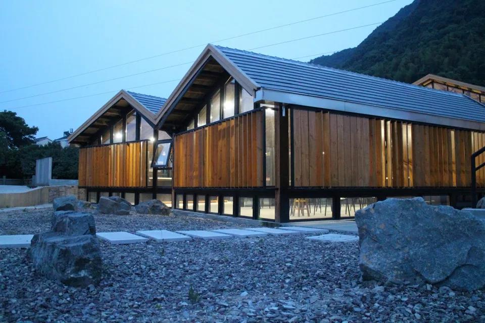 設(shè)計(jì)試圖通過運(yùn)用現(xiàn)代材料與原有傳統(tǒng)材料相結(jié)合的構(gòu)建處理,形成能夠結(jié)合當(dāng)?shù)靥厣傥幕l(xiāng)土質(zhì)樸又兼?zhèn)湄S收喜慶的空間氛圍,讓前來的旅客能夠感受它既傳統(tǒng)又現(xiàn)代的鄉(xiāng)野氣質(zhì)。