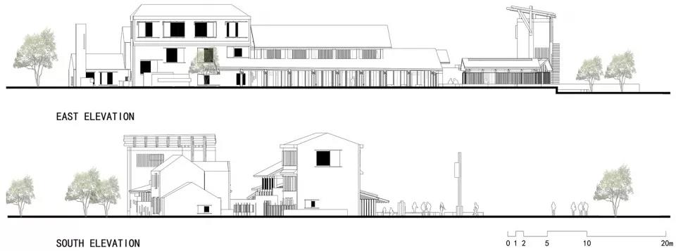 項(xiàng)目中原雙坡木屋架和保留的兩棟老房子中,坡屋頂是需要加以表現(xiàn)的基本元素之一,設(shè)計(jì)上處理原坡頂形式,如何沿用原有的和組織新屋架的空間關(guān)系被有意識(shí)的表現(xiàn)在整個(gè)項(xiàng)目中,設(shè)計(jì)上并反復(fù)強(qiáng)調(diào)這一傳統(tǒng)的且需要現(xiàn)代表達(dá)的特征元素的處理上。