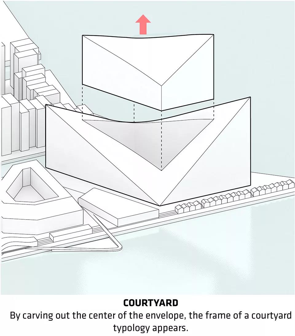 ▼通過切割和抽出的方法,外圍結構的內部形成一個中央庭院