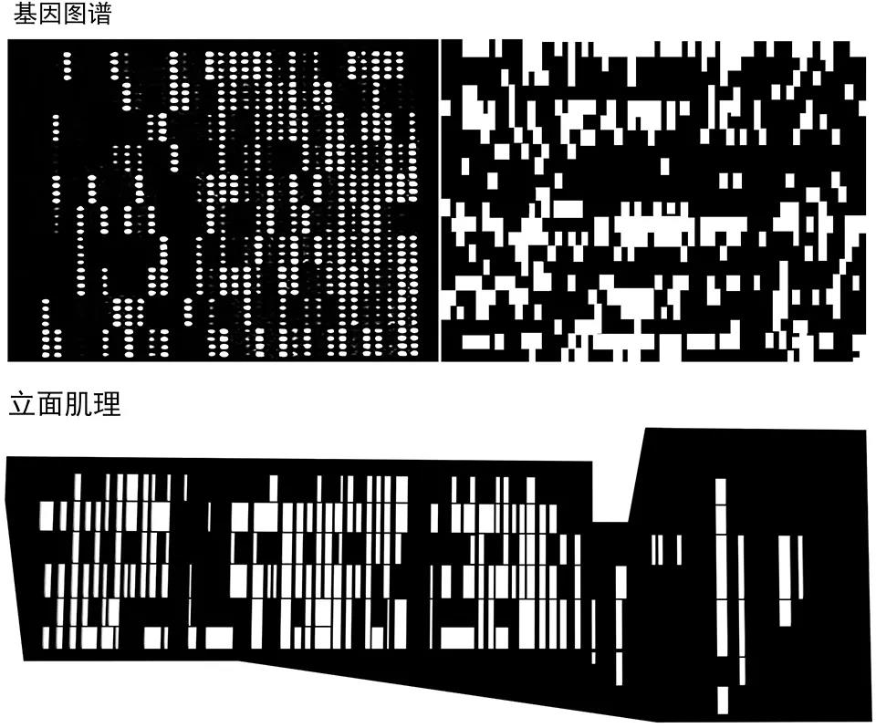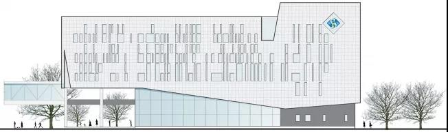 辦公建筑立面形象依據企業原創藥的創新精神,以“基因芯片的表達譜”為母題,在與內部功能一致的的基礎上,編織豐富多變并富有特色的立面肌理,寓意生物基因芯片代碼轉譯符號,凸顯“微芯”企業創新形象。