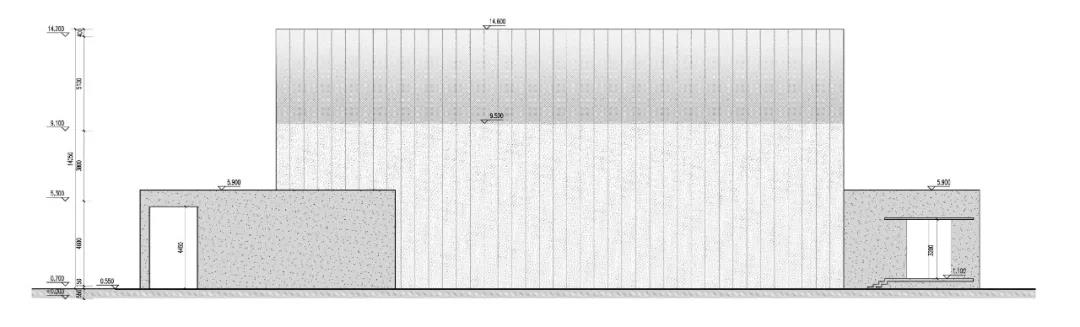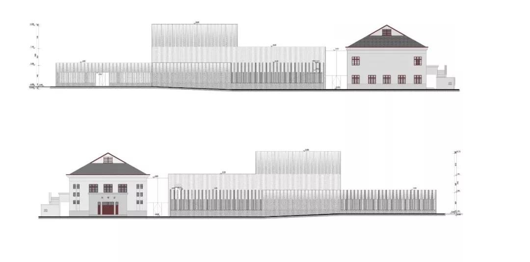 建筑形態(tài)突破常規(guī)新建處理方式,考慮與優(yōu)秀歷史建筑相貼鄰建造,采取下挖策略,控制新建建筑屋頂高度不超過歷史建筑屋脊高度。