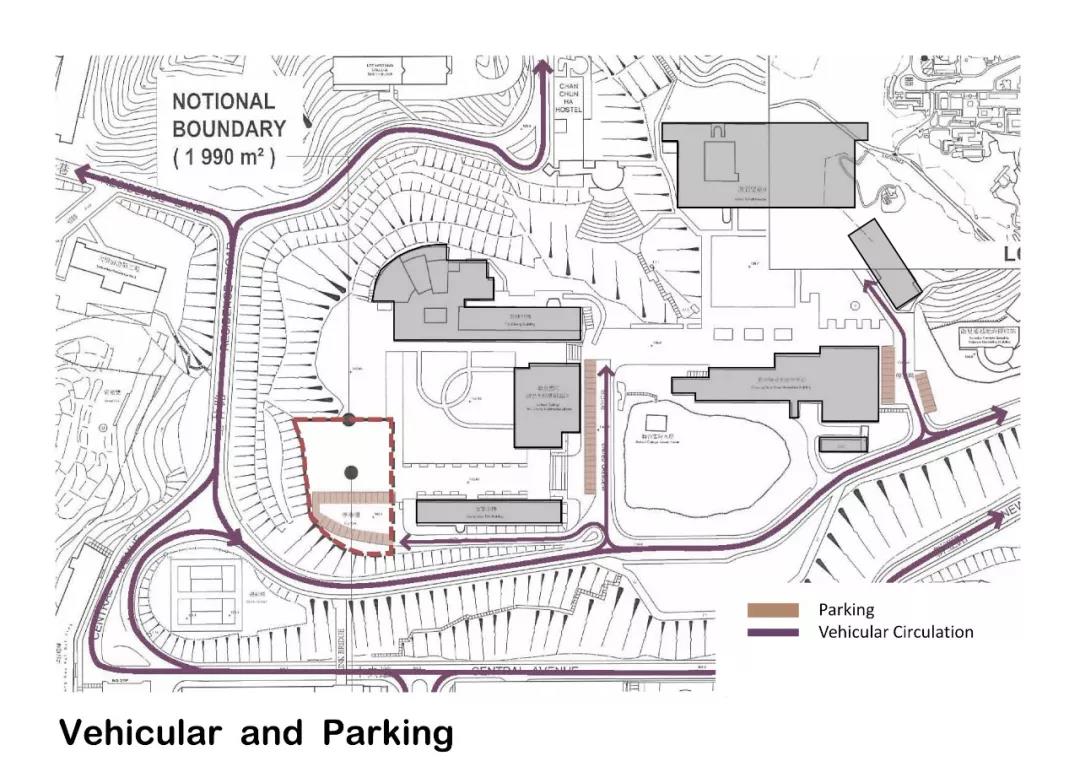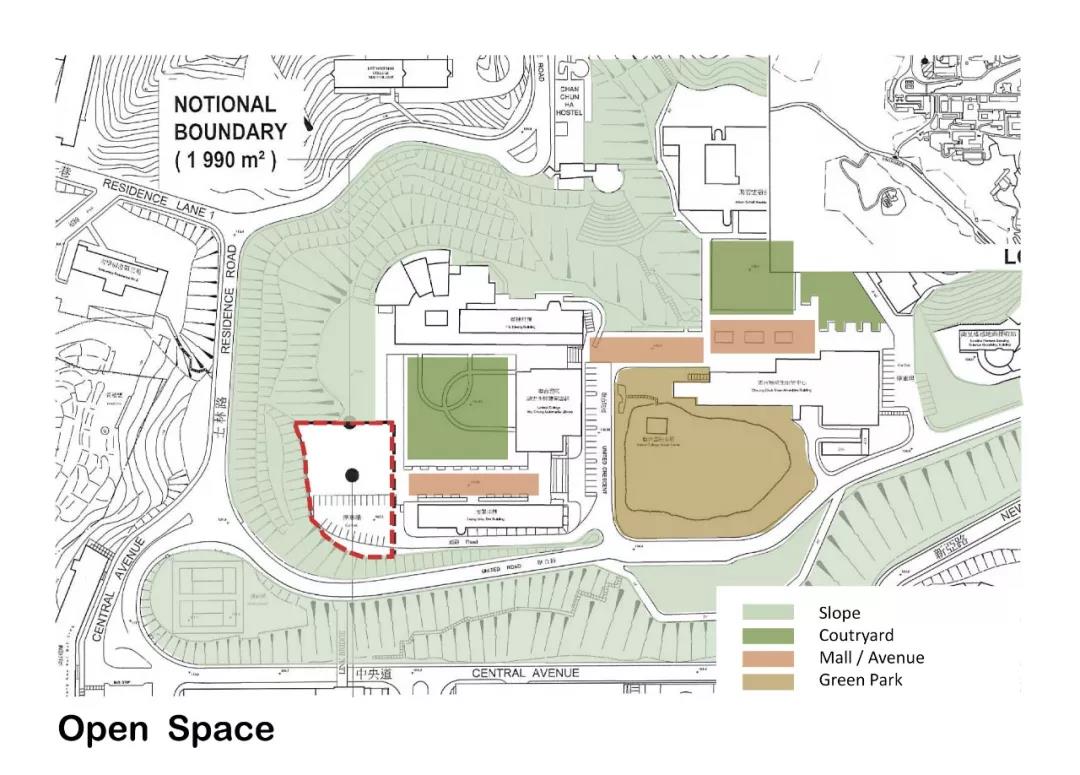 作為現有建筑集群的延伸,新建宿舍樓通過打破南翼和西翼的體量,在與曾肇添樓建筑高度保持一致的同時順沿聯合書院大道軸線,創造出一個面向遠處的框架景觀。整個建筑不僅從校園中心的角度創造了水平體量的連續性,還與聯合書院建筑群形成一個連貫的天際線和友好的城市建筑界面。