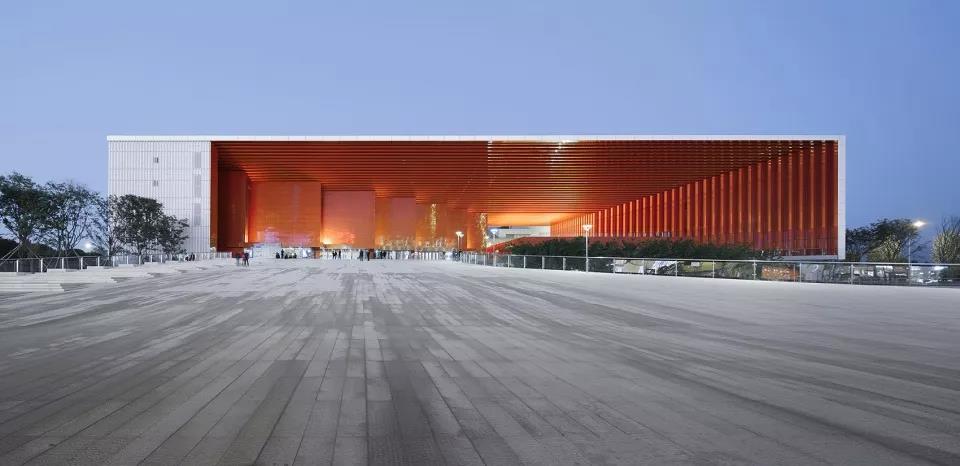 紅色的金屬幻彩板是設計師為本項目特別定制的“義烏紅”,其特點是:平常為朱紅,在特定的光線角度下卻呈現出燦爛的金******。“義烏紅”隱喻著義烏可以為世界各地商旅提供發現財富、實現夢想的機會,到義烏文化廣場尋找那一抹“金色”,已經成為參觀者經常參與的趣事。
