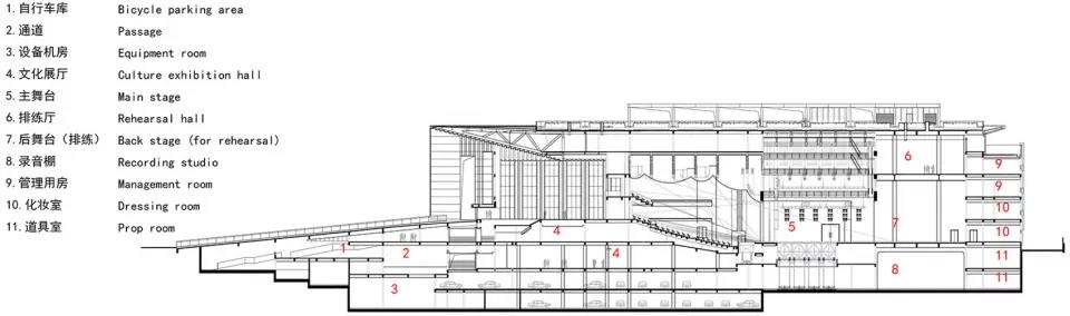 傳承中國傳統建筑中以庭院為中心的營造傳統,本項目中建筑的中心不是宏大的廳堂,而是由下沉廣場通過坡道、大臺階蜿蜒至屋頂花園的立體庭院,其中的空間與動線組織,起承轉合,步移景異,也是對中國傳統園林空間組織手法的學習和發揚。