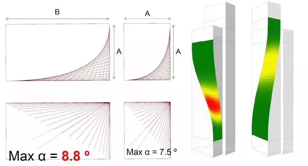 這一獨特極致的扭轉造型形成了扭曲極大的雙曲面,項目體量中最大單層扭擰角度達8.8度/層,遠超同類項目,是全球現有的超高層項目單層(CTBUH Journal, 2016 Issue 3)最大扭擰角度的近1.5倍,項目建成后將是“世界第一扭”寶座的強力競爭者。這一世界級難度挑戰,有賴于RFR以及前沿幕墻技術的助力,得以將設計高精度實現。