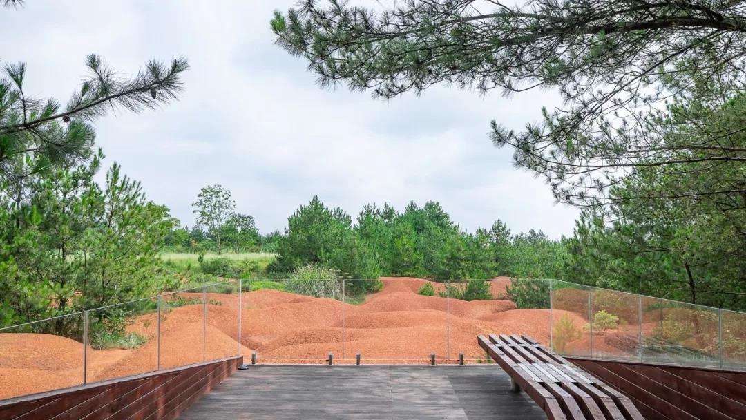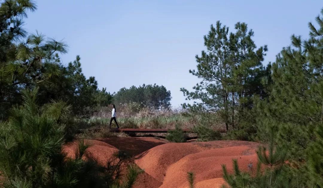 南昌綠地紅土公園,是以第四紀網紋紅土(Plinthitic Horizon) 組成的紅色荒漠為主要特色的自然公園,場地現狀是壯闊的紅土丘陵和大片的馬尾松林。