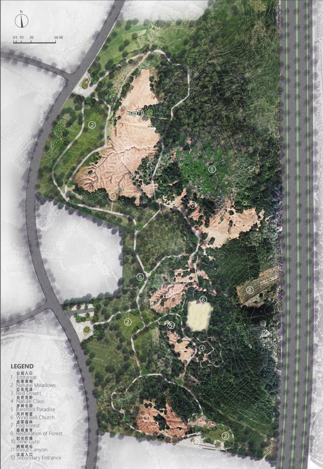 此次設計旨在保護這片紅土遺址并形成遺址公園,結合生態策略對場地進行生態性修復,并向公眾有限開放,使之發揮地質科普,自然教育的作用,方便民眾去了解大地之殤和自然之美。