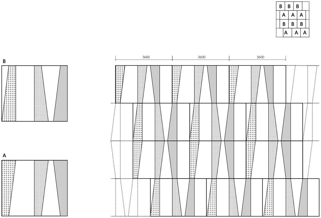 在構(gòu)造方面,這些梯形體都是工廠預(yù)制件,在施工現(xiàn)場(chǎng)工人利用鋁板的孔洞把梯形體固定在其內(nèi)部的結(jié)構(gòu)支架上,避免了固定構(gòu)件外露而影響外觀。